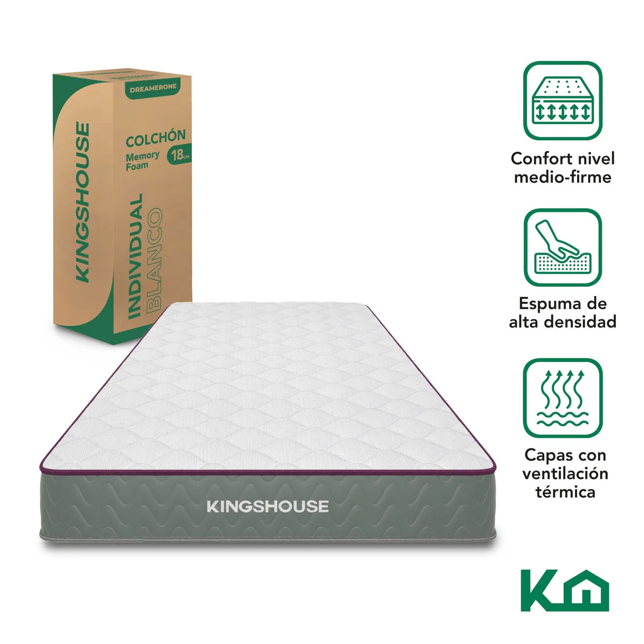 Colchón Individual KingsHouse en Caja Essential Memory Foam