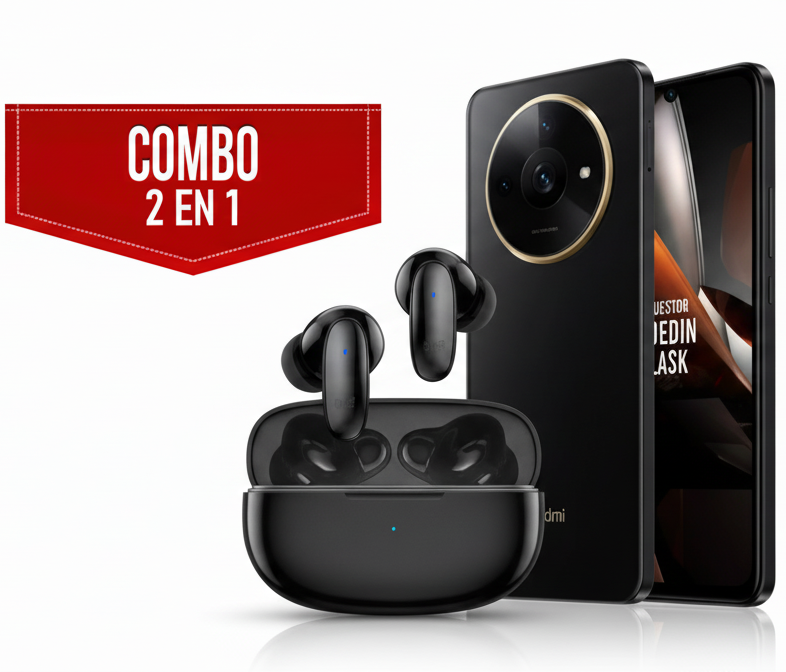 Lleva conectividad, entretenimiento y practicidad en un solo paquete con este Combo Xiaomi Redmi A3X de 6.7″ acompañado de audífonos inalámbricos True Wireless. El smartphone cuenta con una pantalla amplia HD+ de 6.7″, procesador eficiente, memoria RAM de 3GB y almacenamiento interno de 64GB expandible, lo que garantiza un rendimiento fluido en aplicaciones, navegación y multimedia. Su diseño elegante en color negro y su batería de larga duración lo convierten en un dispositivo ideal para el día a día.