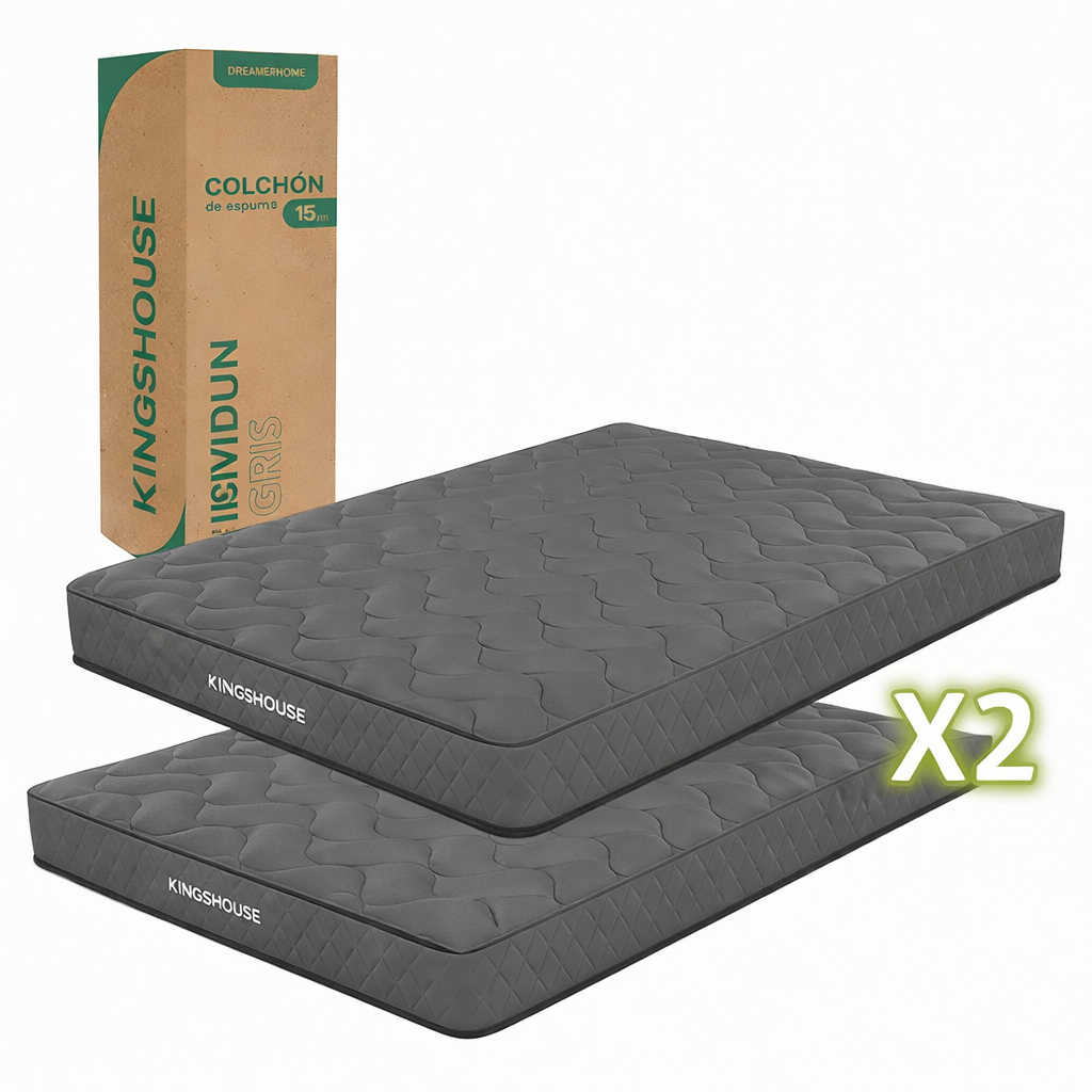 Colchón Individual de Alta Densidad, Antiácaros e Hipoalergénico Gris Kingshouse (2 Colchones)