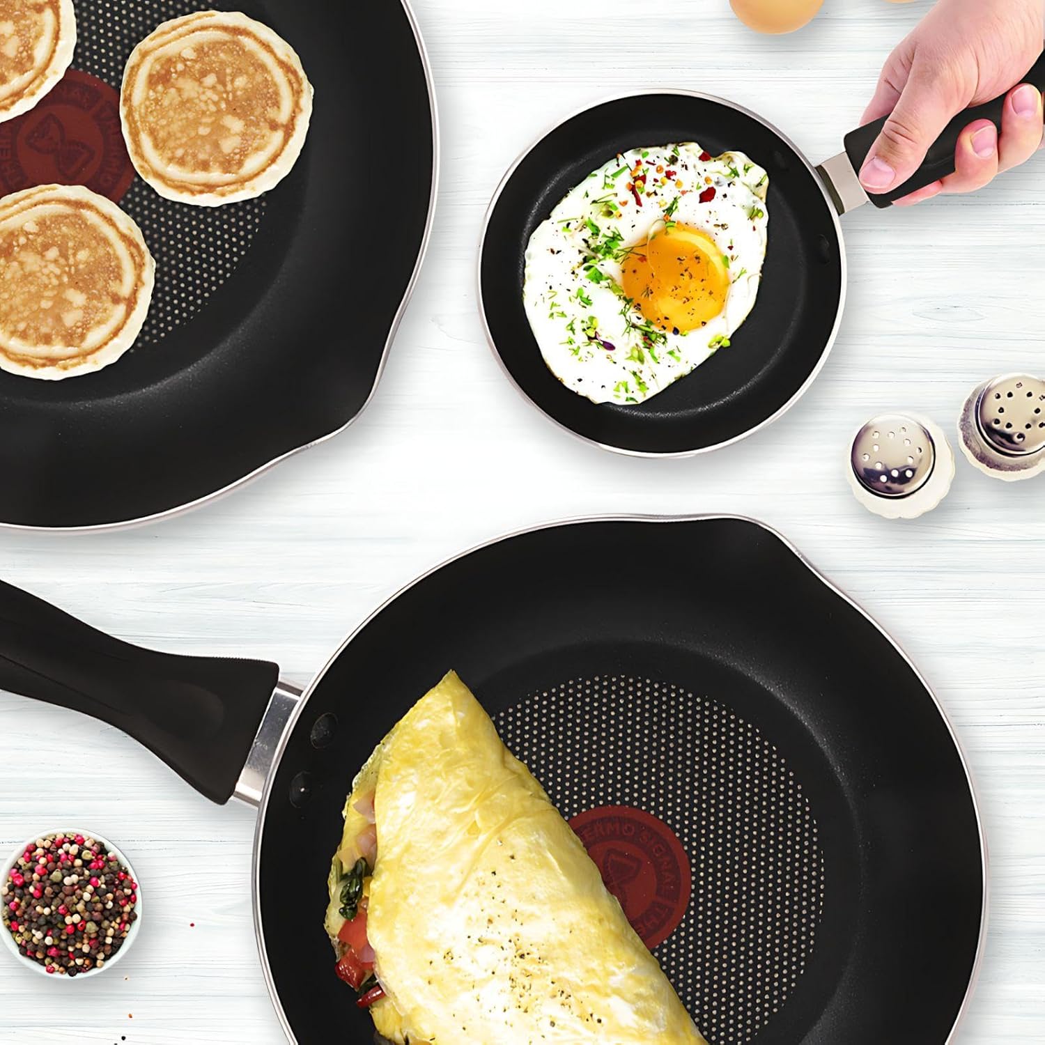 Sartén T-Fal, Negro, 3 piezas